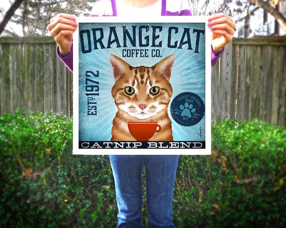 Orange Tabby Cat Coffee Company Graphic Artwork Giclee Etsy Orange Tabby Cats Orange Tabby Tabby Cat